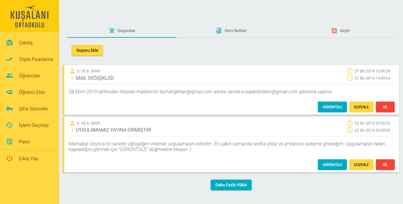Kuşalanı Ortaokulu Bilişim Uygulaması